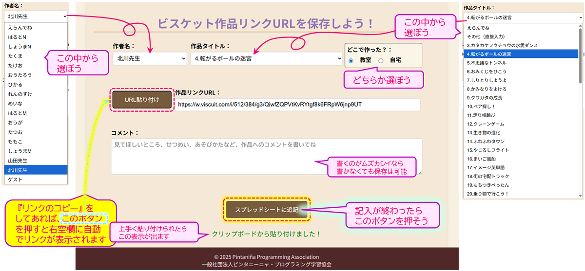 作ったプログラムは、リンクをコピーして自分のシートに貼り付けましょう。